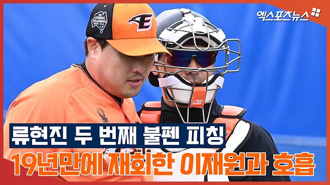 19년 만에 한화 이글스에서 재회한 동갑내기 류현진, 이재원의 불펜 호흡을 영상으로 담았다.