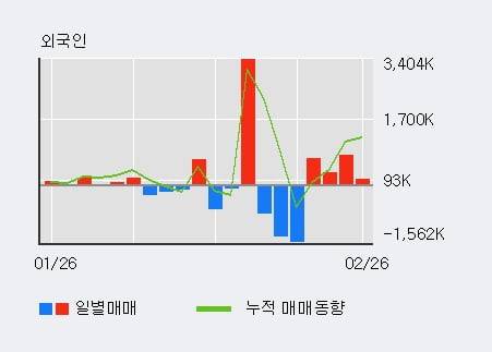 ◆ 주체별 매매동향- 외국인 4일 연속 순매수(191.6만주)지난 한달을 기준으로 보면 외국인이 121.1만주를 순매수했고, 기관도 85.7만주를 순매수했다.