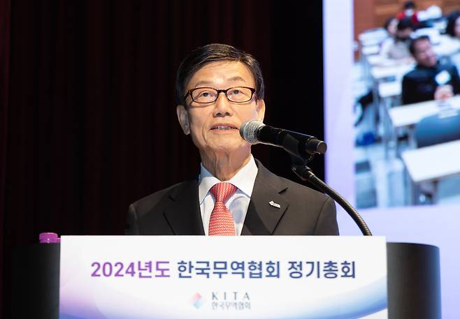 한국무역협회는 오늘(27일) 오전 삼성동 코엑스에서 '2024년 정기총회'를 개최하고 윤진식 전 장관을 제 32대 회장으로 선임했습니다.