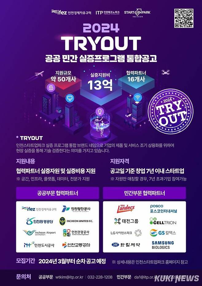 인천경제청, 2024년 인천스타트업파크 ‘TRY OUT’ 참여 스타트업 모집