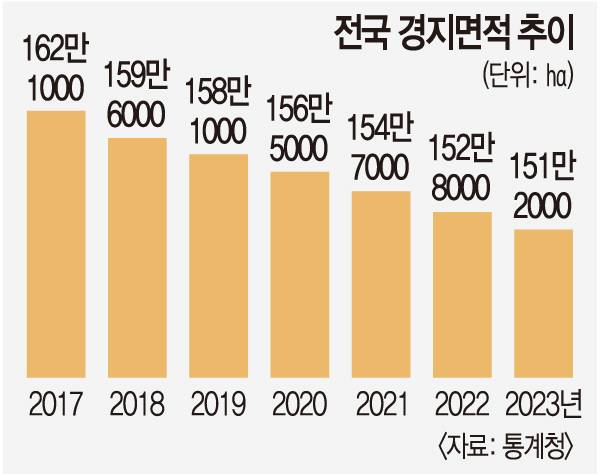20년째 줄어든 경지면적… 그린벨트 해제로 더 좁아진다