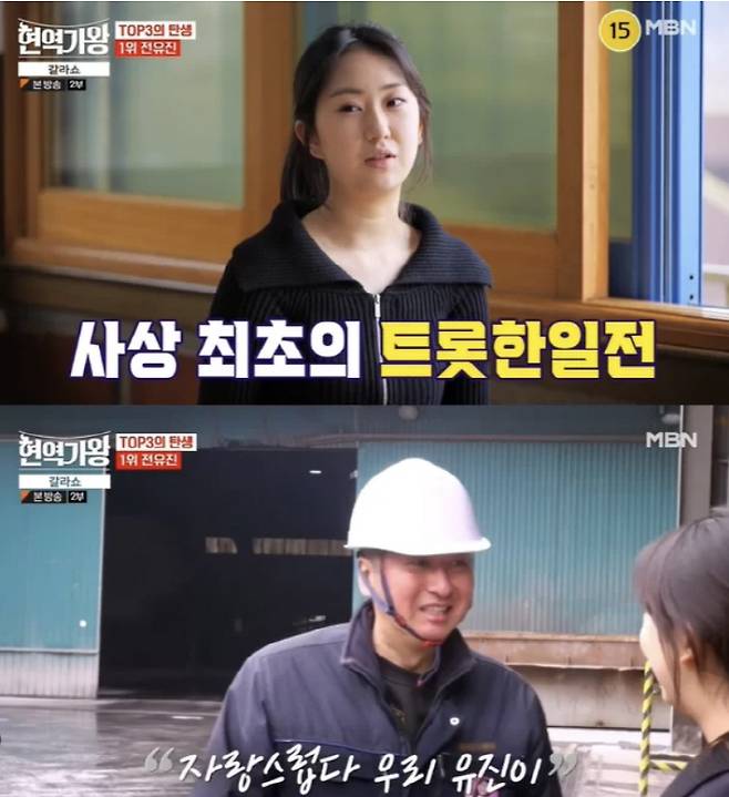 전유진은 "직원 분들이 나 '현역가왕' 1위한 거 다 아시냐"고 물었고, 그의 아버지는 "너무 좋아한다. 다 팬이다. 매일 투표도 같이 해줬다. 아빠도 계속 스밍(스트리밍) 돌렸다"고 답했다.