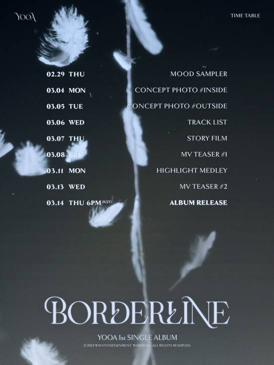 28일 WM엔터테인먼트는 오마이걸 유아의 싱글 앨범인 'Borderline'의 타임테이블을 공개했다.