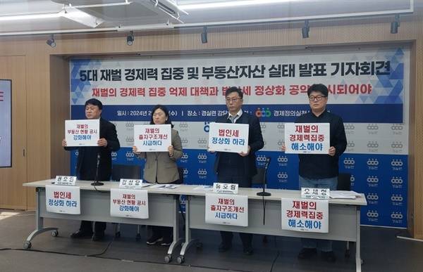 김성달 사무총장은 "지난 30년 간 재벌에 대한 경제력 집중 상황도 더 심각해지고, 개인뿐 아니라 재벌들도 부동산 자산을 많이 늘리고 있는 데 대해 심각한 우려를 표한다"고 말했다.