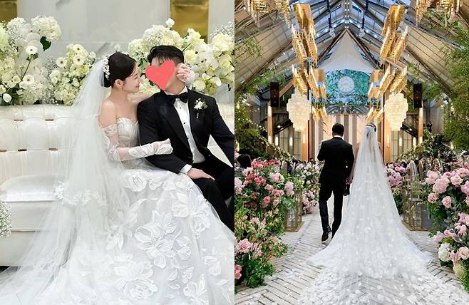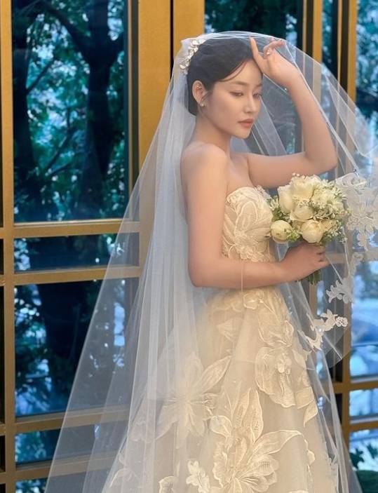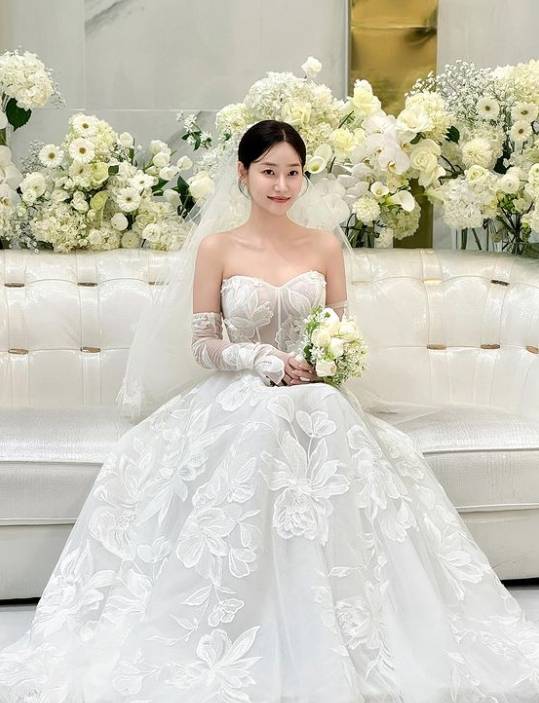 공개된 사진에는 결혼식 당일 웨딩드레스를 입은 유나의 모습이 담겨 있다.