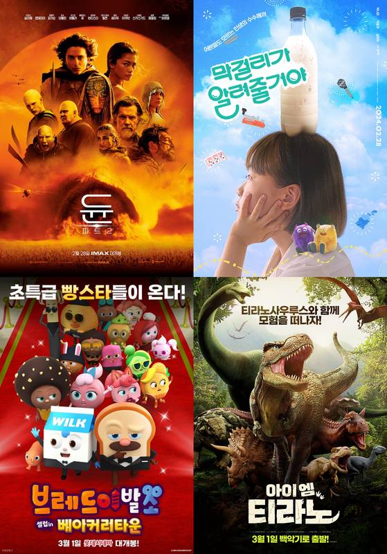 이와 더불어 기발한 소재와 연기파 배우들의 출연으로 기대를 모은 독립 영화 '막걸리가 알려줄거야(김다민 감독)'도 '듄: 파트2'와 함께 개봉했으며 애니메이션 영화 '브레드이발소: 셀럽 인 베이커리타운(정지환 감독)'과 '아이엠 티라노(상명·사림 감독)'도 관객들과 만남을 갖는다.