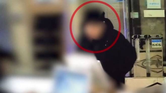 가방을 뒤지며 내용물을 확인하더니 외투 안에 숨겨 유유히 나갑니다.