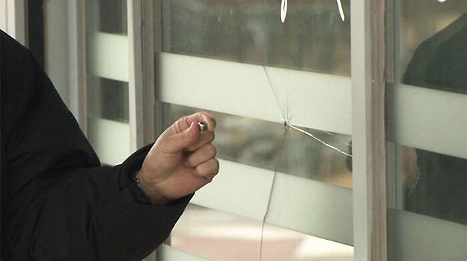 업주는 설 연휴가 끝난 뒤부터 2주 동안 세 차례에 걸쳐 유리창이 깨졌는데, 견적이 500만 원 정도 나왔다고 하소연합니다.