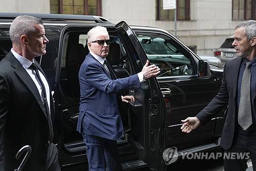 Musician Don Henley, center, arrives to court in New York, Wednesday, Feb. 28, 2024. Three collectibles-world professionals are on trial in the criminal case involving roughly 100 legal-pad sheets from the development of the Eagles’ 1976 “Hotel California” album. They are charged with scheming to conceal the pages' disputed ownership and sell them despite knowing that Henley claimed they had no right to do so.. (AP Photo/Seth Wenig)