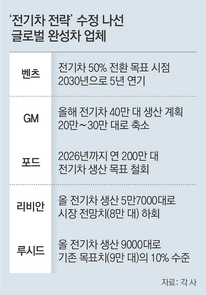 더군다나 전기차 업체 사이에 가격 경쟁도 심해지고 있다. 전기차 선두 업체인 미국 테슬라와 중국 비야디(BYD)가 기습적으로 가격을 인하하거나 저가형 모델을 내놓았던 여파가 업계 전반으로 퍼진 것이다.
