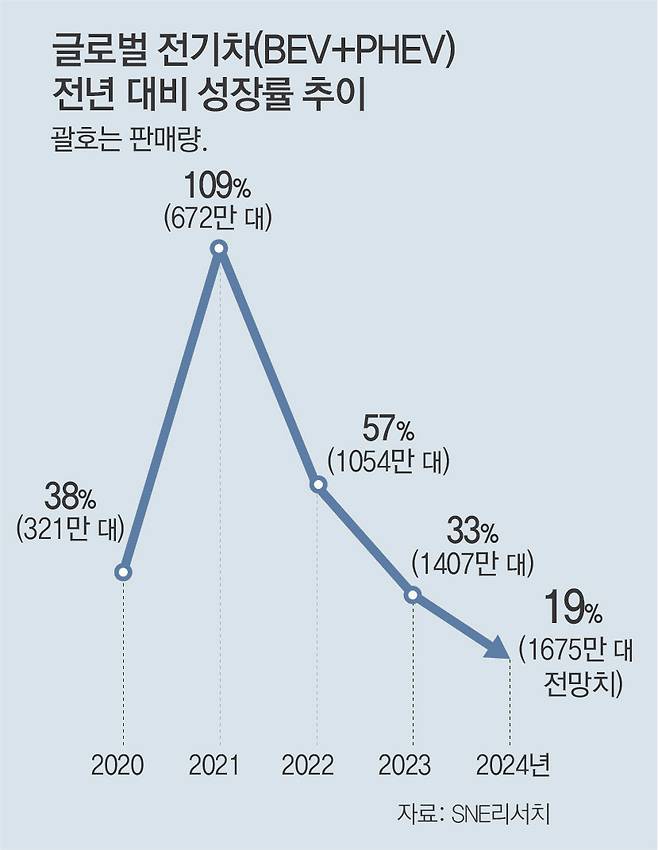 글로벌 전기차 성장률 109%→19% ‘신기술의 늪’