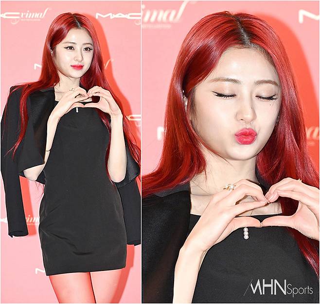 이날 성숙미 넘치는 룩에 시크한 포즈를 취한 허윤진은 다양한 하트로 사랑스러움을 전하며 포토타임을 마쳤다.