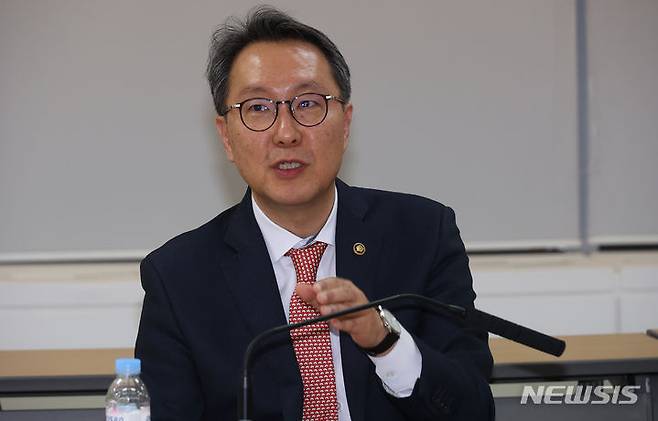 [서울=뉴시스] 황준선 기자 = 박민수 보건복지부 제2차관이 29일 오후 서울 영등포구 건강보험공단 회의실에서 전공의들과 3시간 가량의 대화를 마친 뒤 브리핑 하고 있다. 이날 대화에 참여한 전공의는 10명 이하로 파악됐다. (공동취재) 2024.02.29. photo@newsis.com