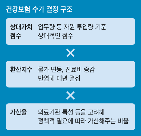이런 구조여서 수술이 잦은 필수 의료 분야에서는 수가를 올려달라고 아우성을 쳤다. 그런데도 정부는 근본적인 상대 가치 점수는 손대지 않고 가산 제도를 활용해 비용을 조금씩 얹어주는 땜질식 처방만 계속했다. 상대 가치 점수는 5년마다 조정해야 했지만 지금까지 2008년, 2017년, 지난해 9월 등 세 차례밖에 조정하지 않았다.