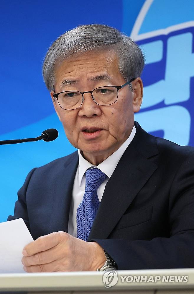 (서울=연합뉴스) 이정훈 기자 = 더불어민주당 임혁백 공천관리위원장이 1일 서울 여의도 중앙당사에서 공천심사 결과를 발표하고 있다. 2024.3.1
