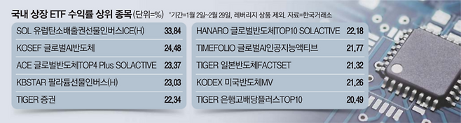 1일 한국거래소에 따르면 올해 연초부터 현재까지 국내에 상장된 ETF 전체 수익률 2위 상품은 ‘KOSEF 글로벌AI반도체’로 나타났다.