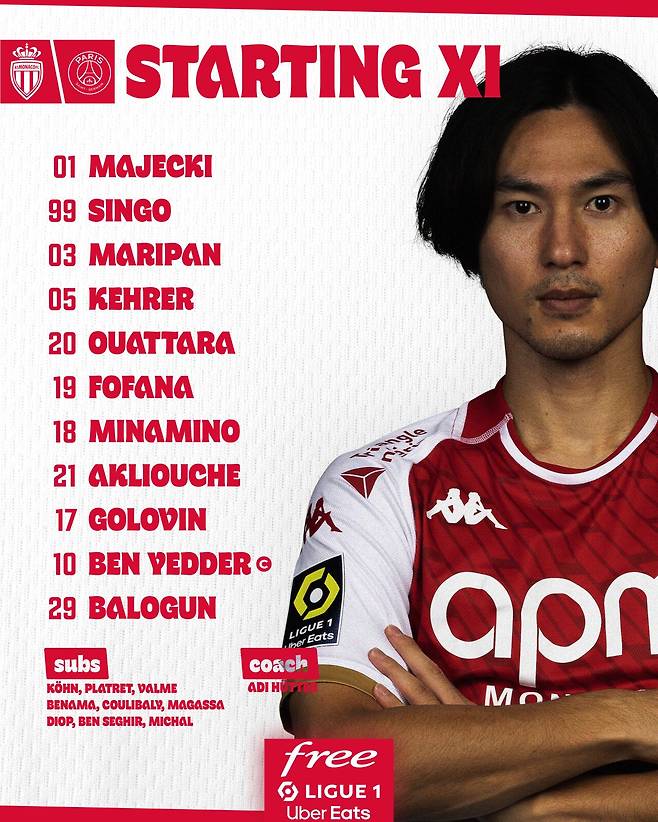 홈팀 모나코는 4-4-2로 나섰다. 라도스와프 마예츠키가 골문을 지켰다. 윌프리드 싱고, 기예르모 마리판, 틸로 케러, 카숨 우아타라가 수비를 맡았다. 마그네스 아클리우슈, 유수프 포파나, 알렉산드르 골로빈, 미나미노 다쿠미가 중원을 구성했다. 폴라린 발로건, 위삼 벤예데르가 최전방 투톱으로 호흡을 맞췄다.