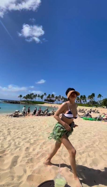 아름다운 해변에 앉아서 여유를 즐기던 황신혜는 자리에서 일어나 날씬한 몸매를 뽐냈다.