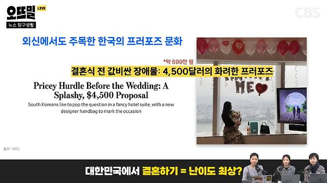◆ 임지윤> 외신에 한국의 프러포즈가 보도된 적이 있습니다. 지난해 6월 월스트리트 저널에 실린 기사입니다.'결혼식 전 값비싼 장애물: 4,500달러의 화려한 프러포즈'라는 제목이었어요.