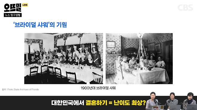 ◆ 임지윤> 원래 브라이덜 샤워는 16세기 네덜란드의 신부 지참금 제도에서 생겨난 문화라고 해요. 딸이 결혼하게 되면 신랑 집안에 일정 금액을 지참금으로 주는 제도가 있었다고 하는데, 이게 신부 집안의 사회적 지위를 상징했다고 합니다. 악습이죠.