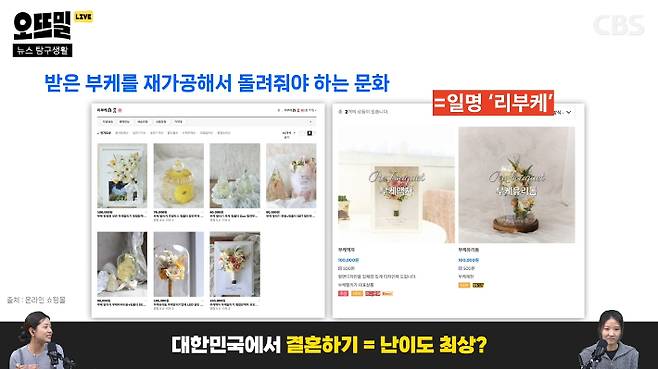 ◆ 임지윤> 그래서 부케를 재가공해 주는 업체가 또 따로 생겼어요. 들어가 보니까 '리(re)부케' 라는 말을 쓰더라고요. 11만 원 정도의 비용을 들여서 부케를 돔으로 다시 만들어줬다는 친구도 있었어요.