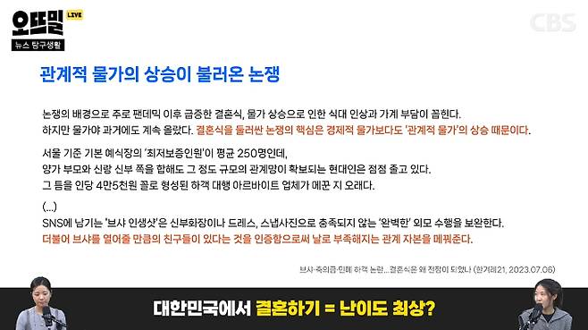 ◆ 신혜림> 말씀하신 축의금이나 브라이덜 샤워 이런 문화들이 사실 돈과 관련된 것들이잖아요. 얼마 전에 신혼부부 10쌍 중 4쌍은 연봉 7천만 원 이상 고소득이라는 뉴스도 나왔어요.