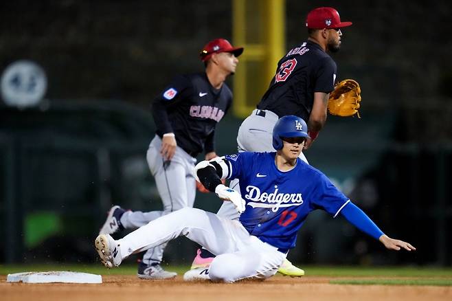 오타니는 2일(이하 한국시간) 미국 애리조나주 글렌데일 캐멀백 랜치에서 열린 2024 미국프로야구 메이저리그(MLB) 클리블랜드 가디언스와의 시범경기에 2번 지명타자로 선발 출전, 1타수 1안타 1타점 2볼넷으로 3출루 활약을 펼쳤다.
