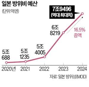 1976년 이후 군사 대국화를 막기 위해 방위비를 국내총생산(GDP) 대비 1% 이내로 유지해 온 원칙도 폐기됐다. 지난해 방위비 예산은 전년 대비 26.4% 늘어 GDP의 1.19%를 기록했다.