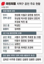 서울에선 박성중(재선·서울 서초을)·유경준(초선·강남병), 대구·경북에선 김형동(초선·경북 안동·예천)·김영식(초선·경북 구미을)·류성걸(재선·대구 동갑)·양금희(초선·대구 북갑)·홍석준(초선·대구 달서갑) 의원의 공천이 보류됐다. 부산·울산·경남에선 이채익(3선·울산 남갑) 안병길(초선·부산 서·동) 의원의 공천 여부가 미정이다.