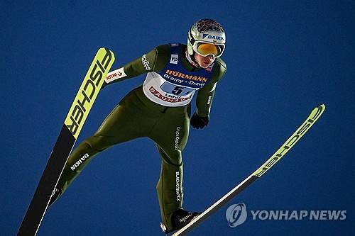epa11194325 Aleksander Zniszczol of Poland in action during the Men Large Hill Team event at the FIS Ski Jumping World Cup in Lahti, Finland, 02 March 2024. EPA/KIMMO BRANDT