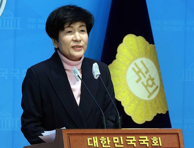 | ▲ 더불어민주당을 탈당한 김영주 국회부의장이 3일 오후 국회 소통관에서 채용비리 의혹 관련 입장을 밝히고 있다. 2024.3.3 |