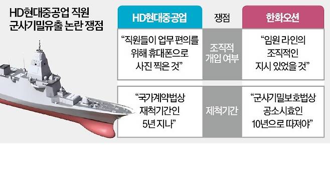 HD현대중공업 측 군사기밀 유출 의혹에 대한 방위사업청의 조사 결과에 불복해 한화오션이 경찰에 수사를 촉구하면서다.
