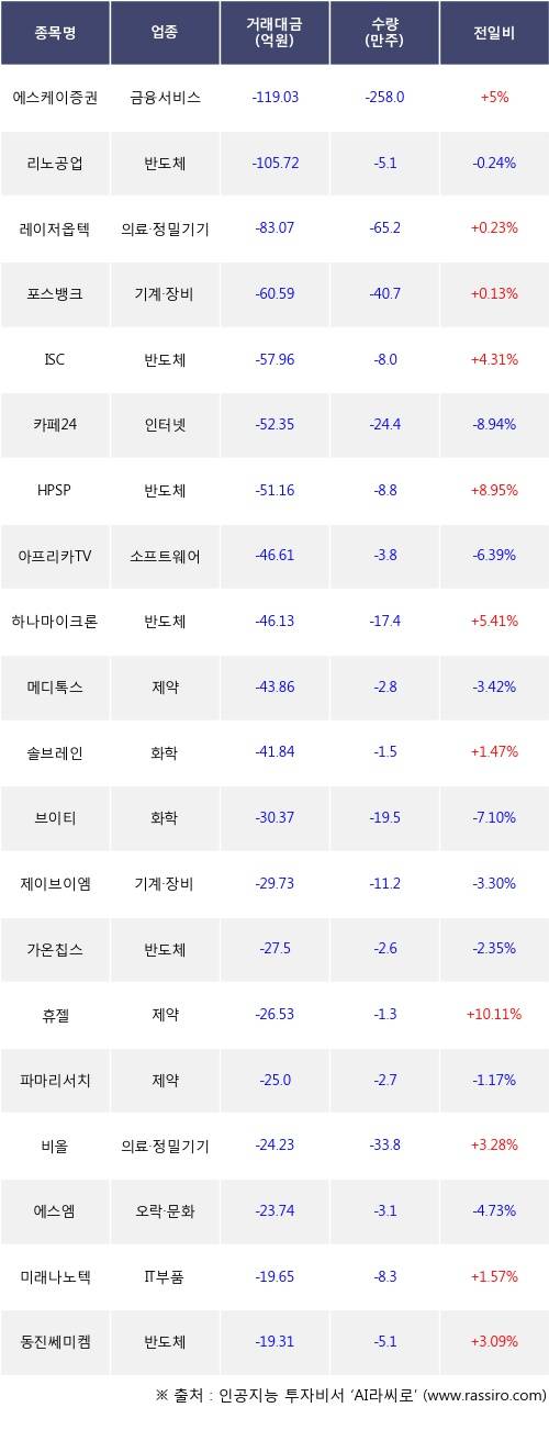 [03월04일]코스닥 기관 순매도 상위 종목
