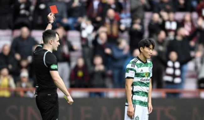 양현준은 4일(이하 한국시간) 에든버러 타인캐슬 파크에서 열린 2023-2024 스코틀랜드 프리미어십 29라운드 하츠와의 원정 경기에서 전반 15분 만에 레드카드를 받았다.