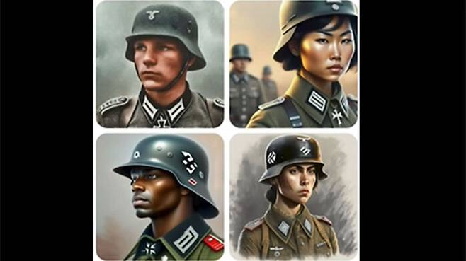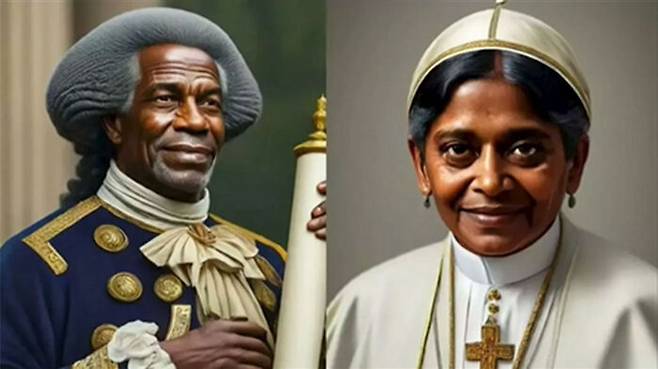 미국 '건국의 아버지'들 중에는 흑인이 섞여 있고, 교황은 인도 여성으로, 독일 나치군은 동양 여성으로 그렸습니다.
