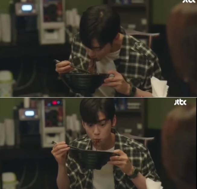 당시 차은우는 박주미, 임수향과 함께 식사 자리에서 짜장면 먹방 열연을 펼쳤다. 이 장면에서도 차은우의 '짜장면 먹방'보다 잘생긴 얼굴이 다했다는 반응.