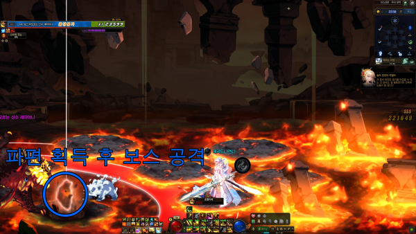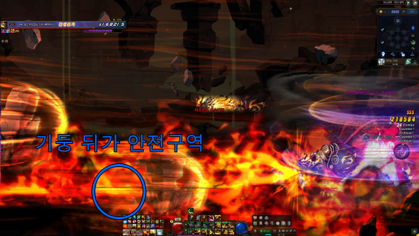 안전 구역 장판에서 벗어나 용암 구역을 밟으면 '신수의 진노' 게이지가 상승한다. 신수의 진노가 가득 차면 초열지옥 카운트가 1회 증가하므로 점프를 이용해 안전 구역 장판 사이를 이동하는 방식을 추천한다.