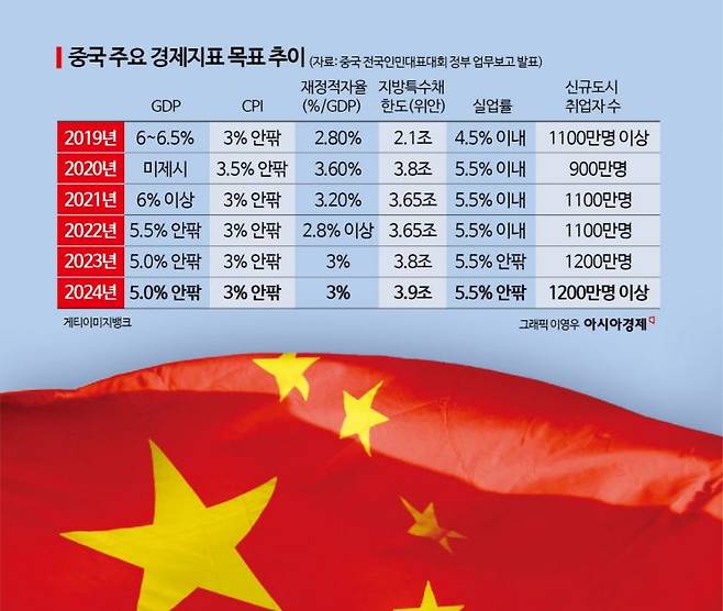 중국 양회(전국인민대표대회·전국인민정치협상회의)의 하이라이트, 향후 경제 기조를 밝히는 전인대 개막식 정부 업무보고에서 예상을 뒤엎는 '서프라이즈'는 없었다. 시장이 점쳤던 '5% 안팎'의 경제 성장률은 지난해에 이어 2년째 중국 정부의 목표치로 내걸렸다. 재정적자 목표치나 물가 상승률, 국방예산 등도 기존의 관측치에서 크게 벗어나지 않는 수준에서 제시됐다.