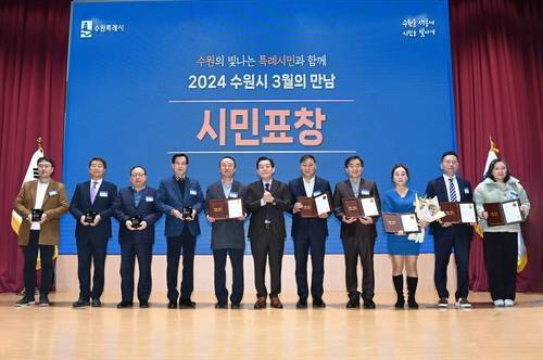 수원시(시장 이재준)가 성실하게 세금을 낸 8개 법인, 시민 12명을 '2024년 수원시 성실납세자'로 선정해 인증패를 수여했다.