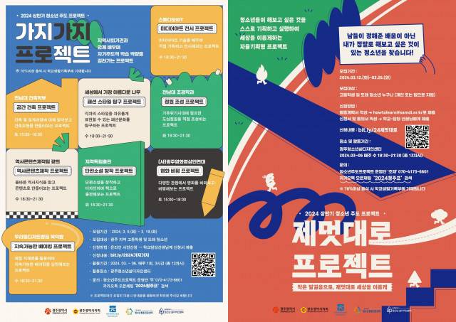 광주청소년삶디자인센터(이하 삶디)는 프로젝트 학습으로 미래진로역량을 키우는 '2024 상반기 청소년 주도 프로젝트' 참여자를 5일부터 모집한다.