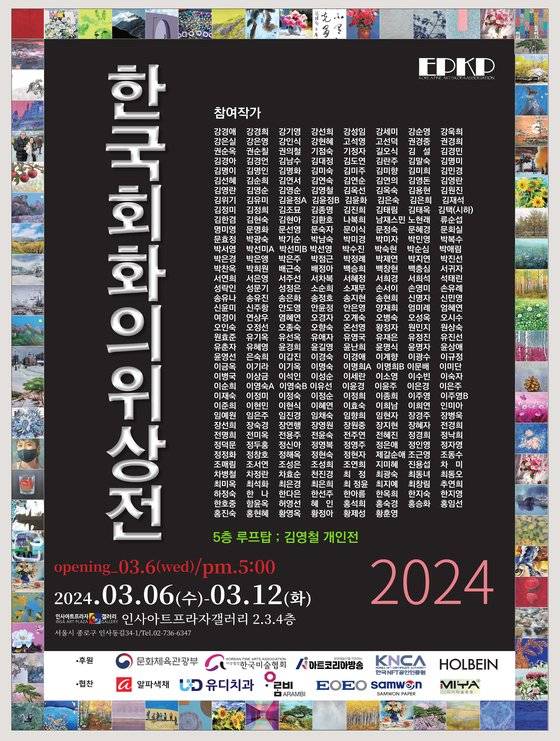 ‘한국회화의 위상전(회장 김영철)’이 3월 6일 수요일부터 12일 화요일까지 일주일 간 서울시 종로구 인사동 소재의 인사아트프라자갤러리에서 개최된다. 5층 루프탑에서는 김영철 작가의 개인전을 볼 수 있다. 2000년 제1회 전시를 시작으로 올해 24회를 맞은 ‘한국회화의 위상전’은 대한민국 중견작가의 위상을 높이고 신진작가를 발굴하자는 취지로 설립되었으며 김영철 회장과 더불어 대한민국 화단을 주름잡는 작가들의 작품을 한 눈에 볼 수 있다.