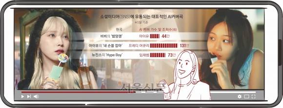 유튜브 등 SNS에서 AI 커버곡이 인기를 끌면서 5일 기준 아이유가 부른 밤양갱 AI 커버곡 영상은 조회수가 44만회를 기록했다. 앞서 프레디 머큐리의 목소리로 커버된 아이유의 ‘내 손을 잡아’는 131만회, 임재범의 목소리로 커버된 뉴진스의 ‘Hype Boy’는 조회수가 73만회나 됐다.