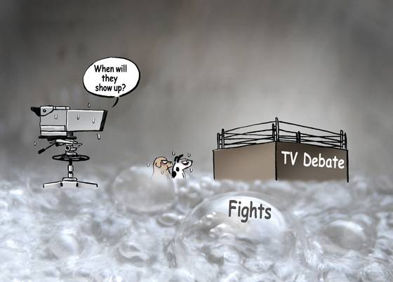 Voters desperately want to see a TV debate between the governing People Power Party’s interim leader Han Dong-hoon and Democratic Party leader Lee Jae-myung, with only 35 days left until the April 10 parliamentary elections. But Lee has refused to accept the Han’s proposal. [PARK YONG-SEOK]
