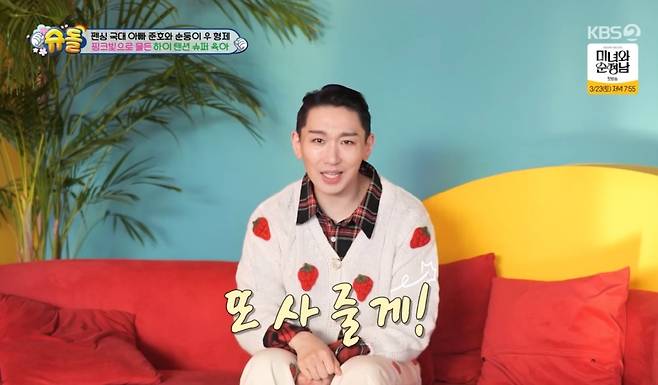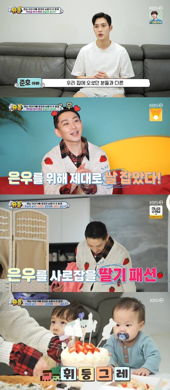 5일 방송된 KBS 2TV '슈퍼맨이 돌아왔다'(이하 '슈돌')에서는 김호영이 은우네 집을 방문했다.