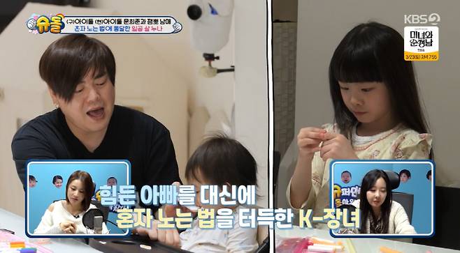 소율이 외출한 후 문희준은 희우 육아에 정신이 없었고 희율은 동생 육아에 바쁜 아빠를 위해 홀로 묵묵히 놀고 식사를 해결했다.