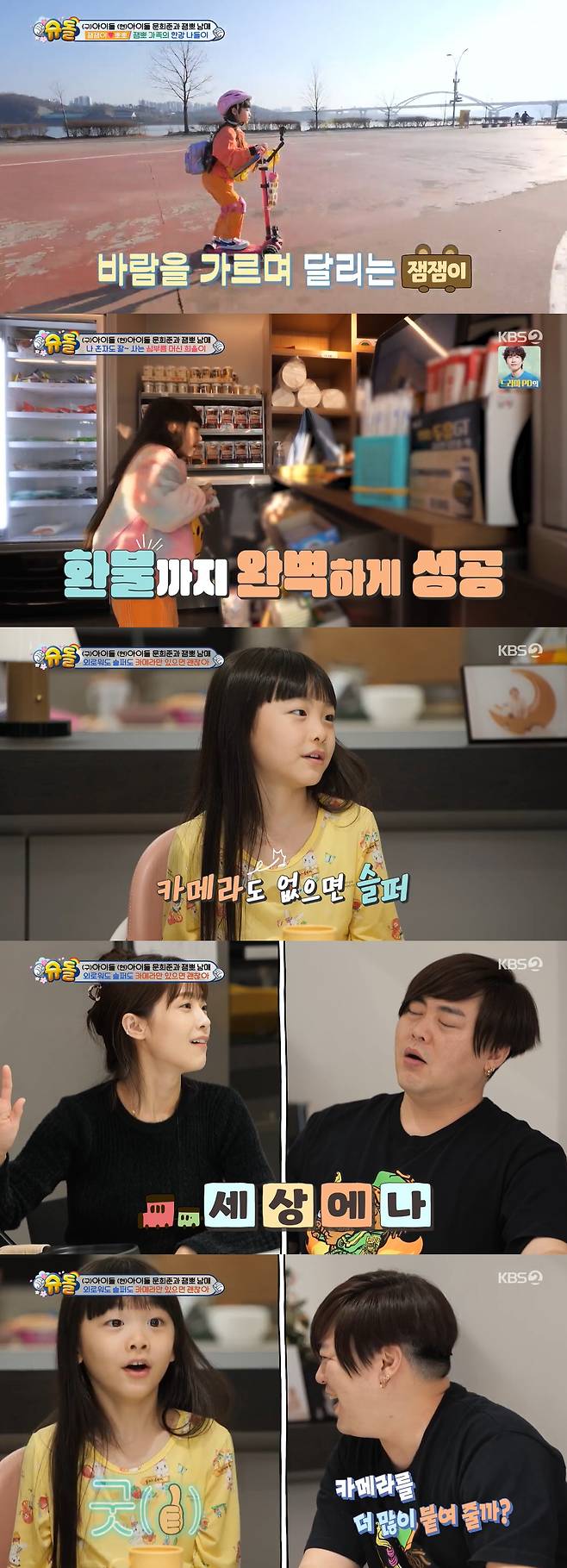 폭풍성장한 희율(잼잼이)이는 "저는 문희율이고 태명이 잼잼이다. 8살이고 만 나이로는 7살"이라며 자신을 소개했다. 이어 "엄청 많이 이만큼 좋다"라며 '슈돌'에 돌아온 소감을 전하기도. 희율은 여전히 배려 가득한 모습으로 스태프들에게 간식을 선물하기도 했다.