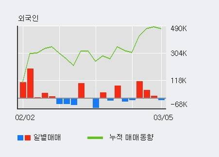 지난 한달을 기준으로 보면 외국인이 37.0만주를 순매수했고, 기관도 107.1만주를 순매수했다. 반면 개인들은 145.3만주를 순매도한 것으로 나타났다. 같은 기간 이 종목의 거래비중은 외국인과 개인이 각각 23.5%, 56.9%로 비중이 높다.