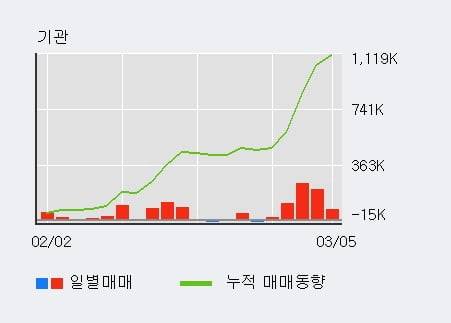 한편 기관은 이 종목에 대해서 최근 5일 연속 64.6만주 순매수를 하고 있다. 더욱이 전일 기관이 대량 순매수를 하고 있어 투자자들의 관심이 집중되고 있다.