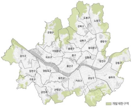 1971년 도입된 이후 서울시 개발제한구역은 2차례에 걸쳐 지정됐으며, 전체면적(149.09㎢)은 행정구역 대비 약 24.6%의 면적을 차지하고 있다. 이후 심각한 주택공급 부족과 주택가격 상승 문제 등으로 개발제한구역에서 많은 국책사업이 추진되었고, 그 주변 지역으로 대규모 주택단지가 들어서거나 역세권 개발 등이 진행되면서, 제도 도입 당시와는 상당히 다른 모습으로 변화되고 있다.