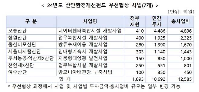 또 울산미포산단에는 방류수재이용 등 저탄소화·디지털화 관련 인프라 구축 사업이 우선협상 대상으로 선정됐다.